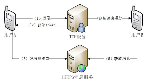 常规即时信息常常使用长连接TCP模式,所有客户-服务器通信都通过长连接进行。