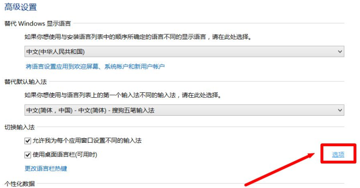 在打开的界面上,单击在选项界面中修改输入方法的方框中的选项。