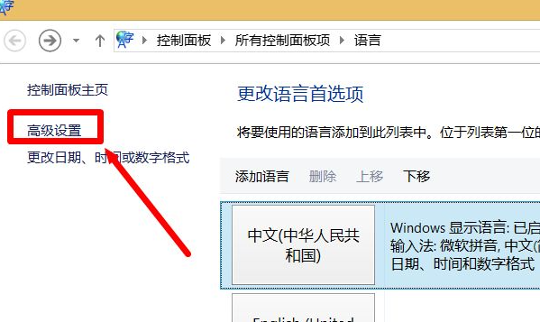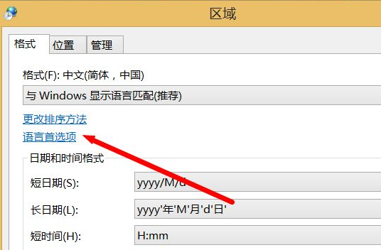 如下图所示,单击以上格式,然后单击区域界面的语言选项。