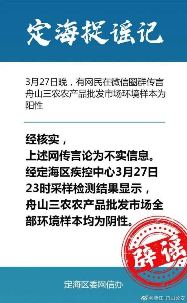 3月27日23时在东山海区疾控中心进行的测试结果表明,泛山三农业批发市场的所有环境样本都是否定的。 网络警察警告我们,互联网是非法的,所以不要散布谣言,也不要相信他们!