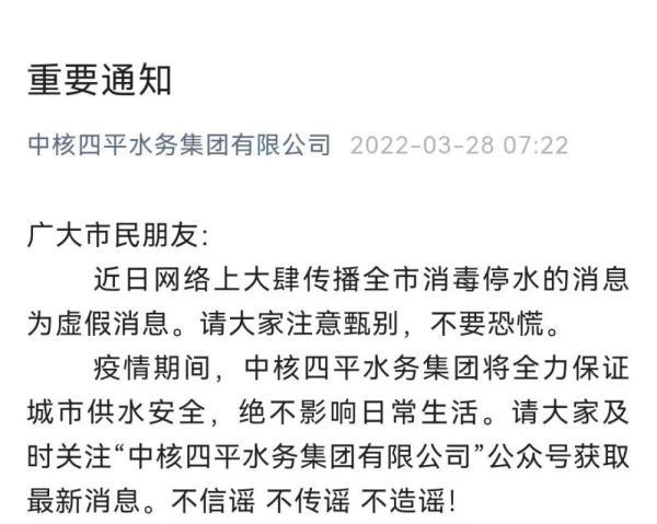 四方网络和中国-中国四国供水集团确认这一信息不正确。 在整个疫情期间,中国-中国四国供水集团将尽一切努力保障该市供水的安全,对日常生活没有影响。 请不要相信谣言,不要重复谣言,不要说出谎言!