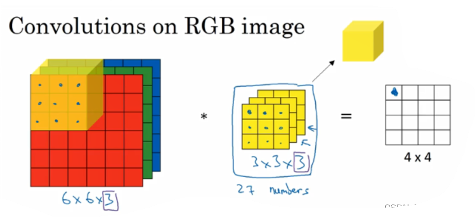 只要有6x6x3的照片样本,将使用3x3x3体积计算法(过滤器)进行体积作业。channels为3,而卷积核中的in_channels提供需要量操作的图像样本channels一致。