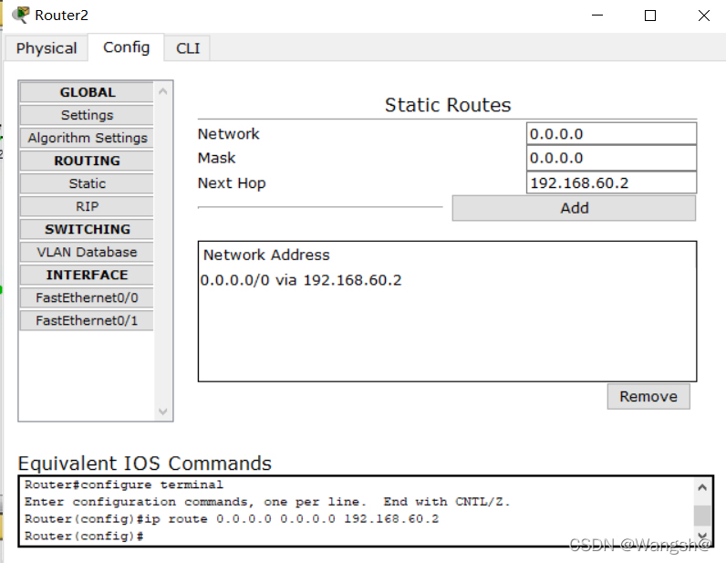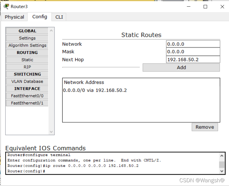 当路由器无法在路由器表格中定位目标网络的路线条目时,它们会将请求发送到默认路线界面。