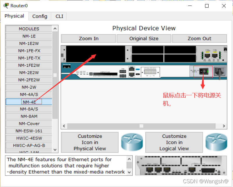 取出一个路由器,然后插入 NM-4E 模块。