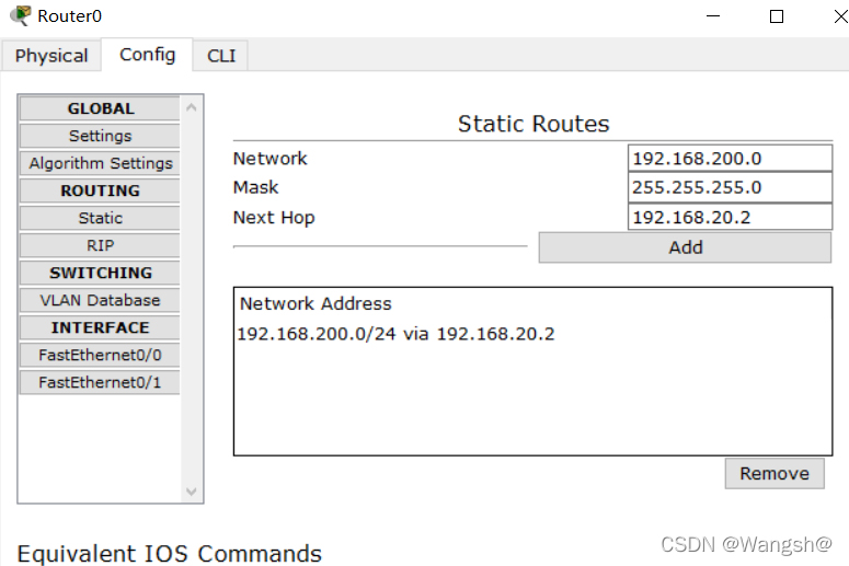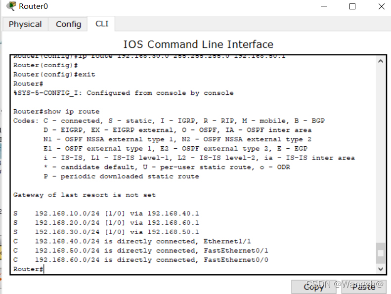 所以我们将增加三条默认路径, 这些路径将被直接传送到核心路由器上, 以便连接到网络的每个区域。 我们还将为核心路由器添加三条相似的静态路径。
