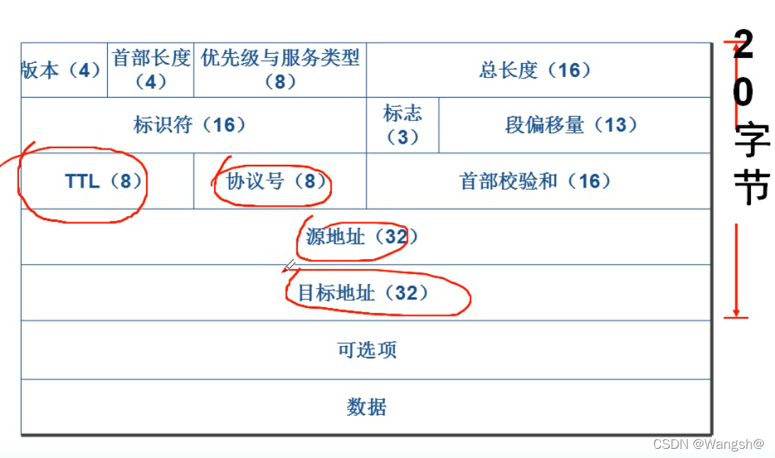 TTL(实时时间):寿命周期字段 0: 00时,数据包通过路由器被一个路由器贬值而删除,以防止网络中数据包的无穷循环。