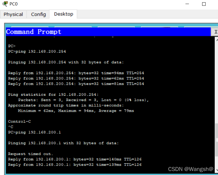 pc0 ping 192.168.100.254