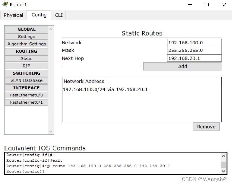 R1路由器现在有一个静态路线。