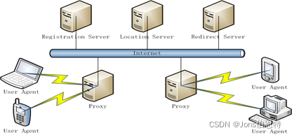 空间投资协议主要包括下列逻辑作用:普遍获得、代理服务器、登记/定位服务器和转线服务器。