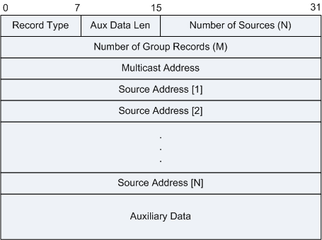 - Block_OLD_Source:指出,根据现有情况,不应从来源地址列表所列来源组从来源组到该组再收到任何额外数据。如果目前的通信中包含 INCLUDE 这个词,如果目前的通信已排除,则从目前的源列表中删除这些组别。将这些组别列入现有源清单