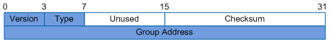 以下是IGMPv1报告的结构,其中载有一般小组查阅报告(成员关系参考报告)和成员报告(成员关系报告)的情况: