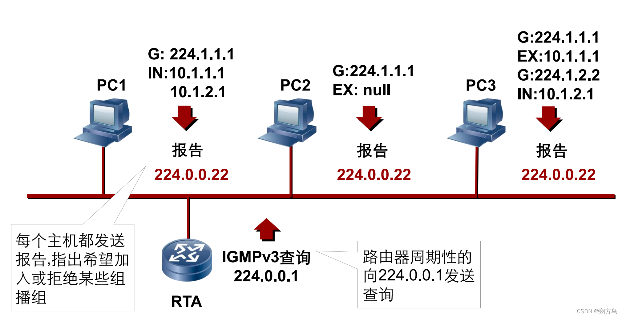 此外,IGMPv3集团的成员和离开通常与IGMPv2类似,不再重复。