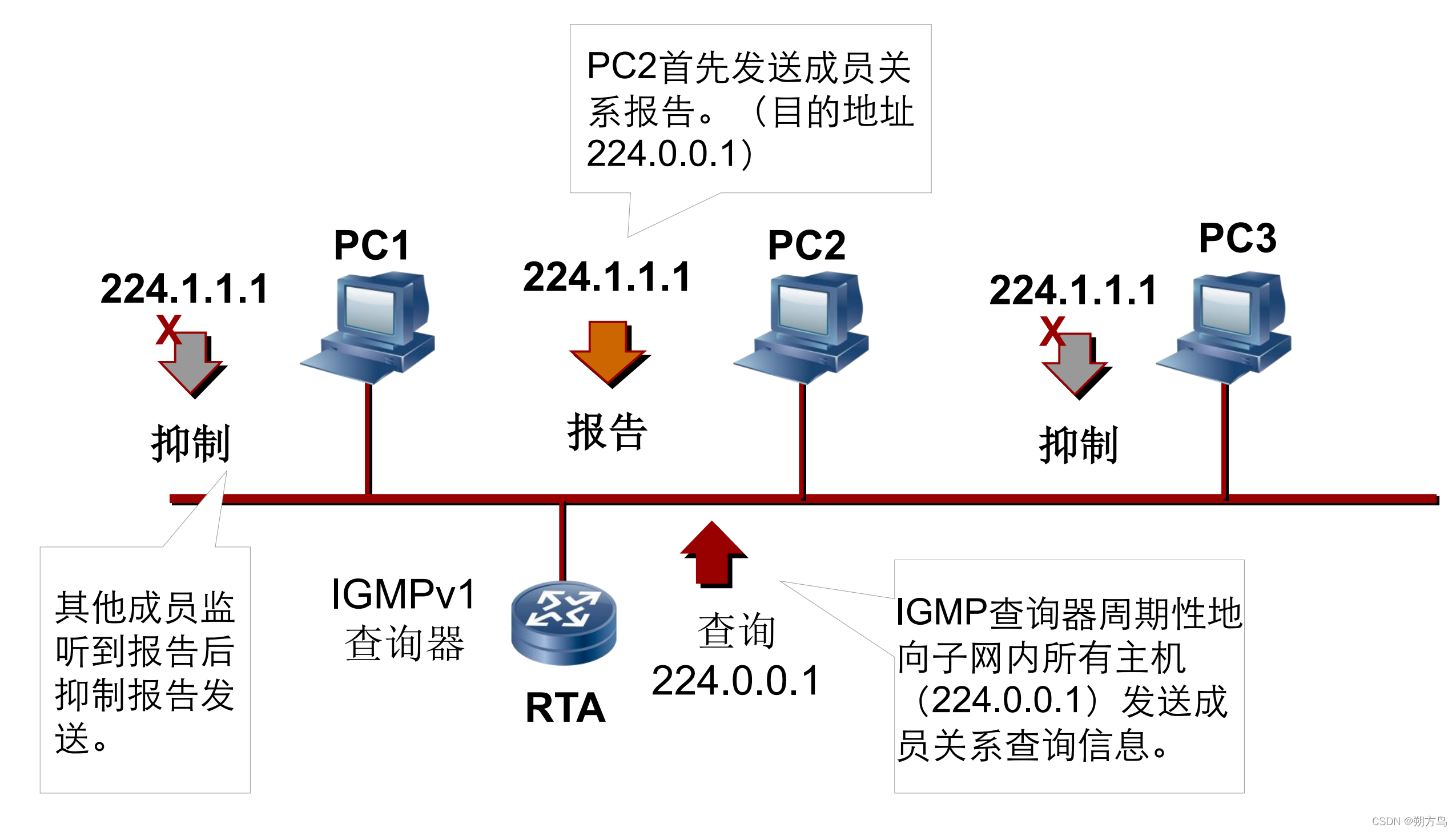 有两个IGMPv1主机和一个IGMPv2路由器。
