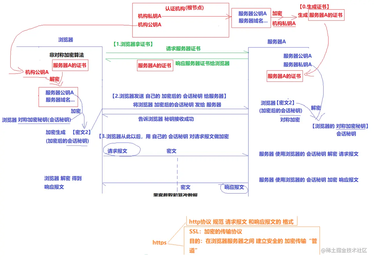 浏览器和服务器使用浏览器会话秘钥B要求和答案是加密的。