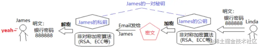 Linda 用James的公钥詹姆斯用他的私人密钥解码