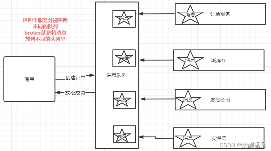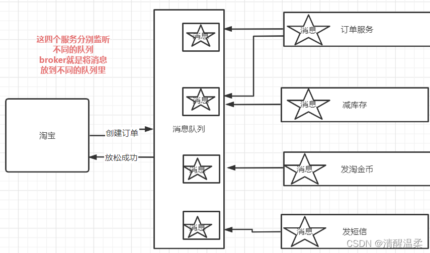 Broker被认为是一个中转站,制片人给他发了一条信息,要他完成任务,Broker向客户提供了信息。向哪个队列发送信件, 或向哪个消费者请求 。)