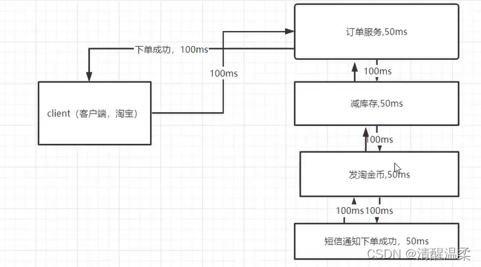 假设最佳网络传输时间为100毫秒。 获得的服务越多,需要的时间就越长。