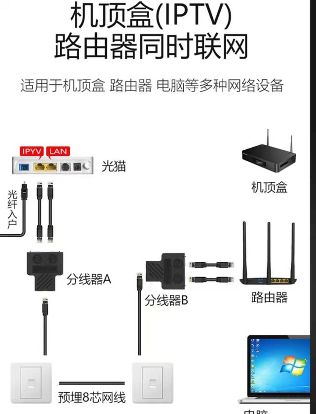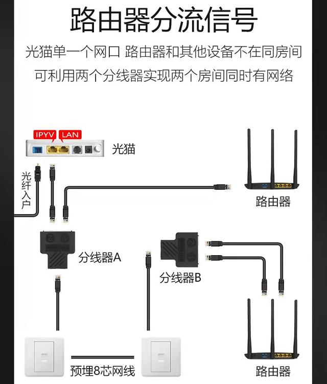 例如,家中只有一个预先封闭的网络,这就需要使用路由器和个人电脑,或连接路由器和电视的IPTV顶端框,或轻猫如何拥有一个单一门户,使网络信号能够到达两个房间。