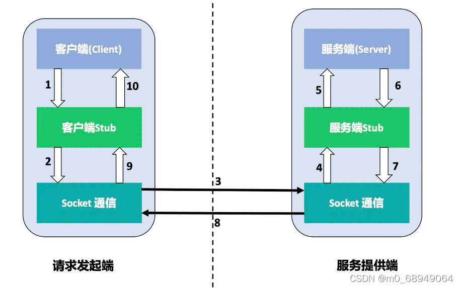 完整的RPC结构由四个基本组成部分组成,可视为根源:客户、客户系统、服务器和服务器系统。