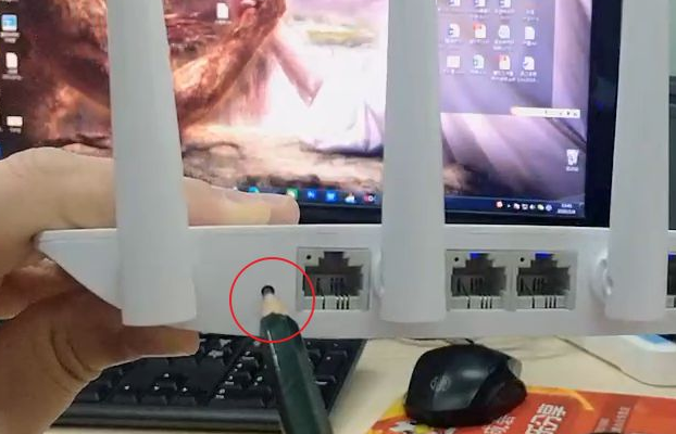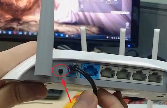 2. 然后,在路由器上方,我们发现一个重置塞,通常位于网络接口附近。