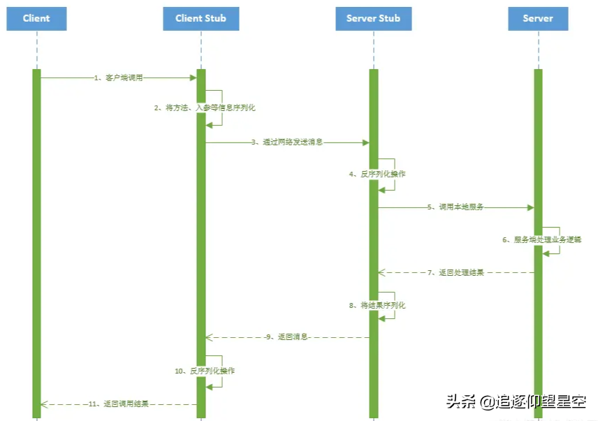 另一方面,RPC框架的目标是对上文步骤2-10进行加密,即对调用、编码/编码过程进行加密,使用户感到在调用远程服务时他们是否正在调用当地服务。
