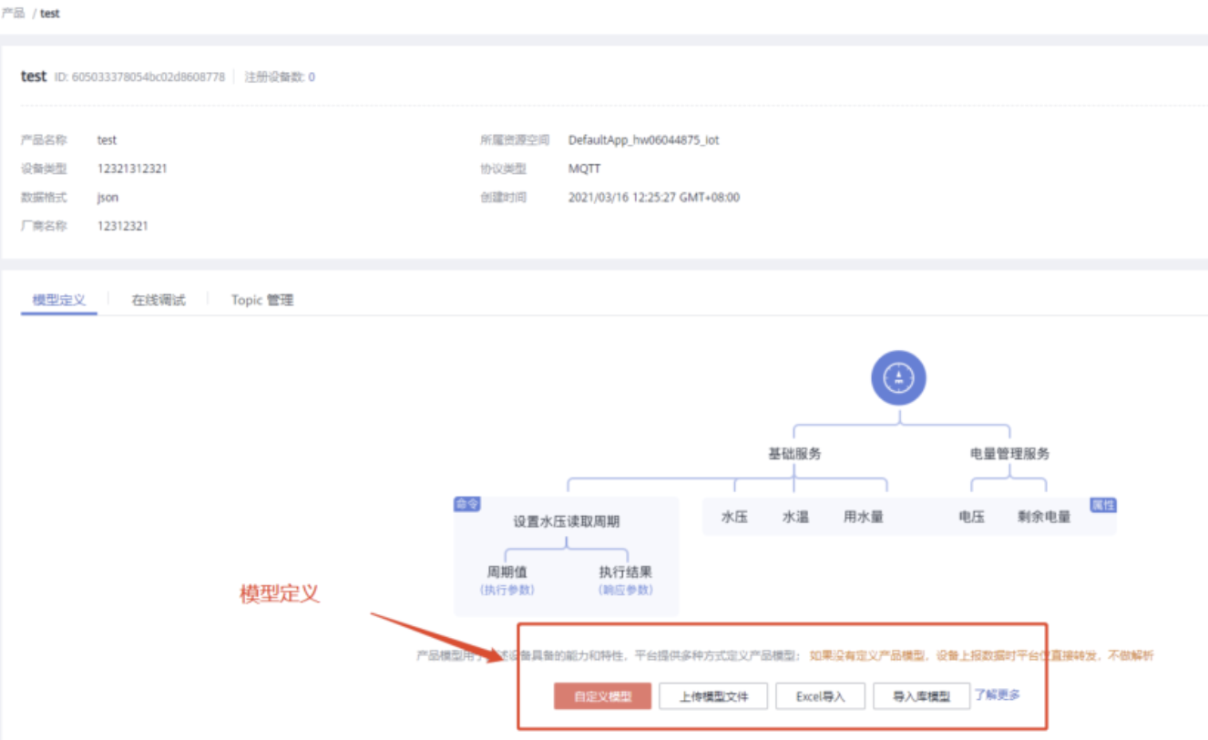 2.5 成功创建后,点击细节,然后点击自定义模型,设计用户自己的模型: