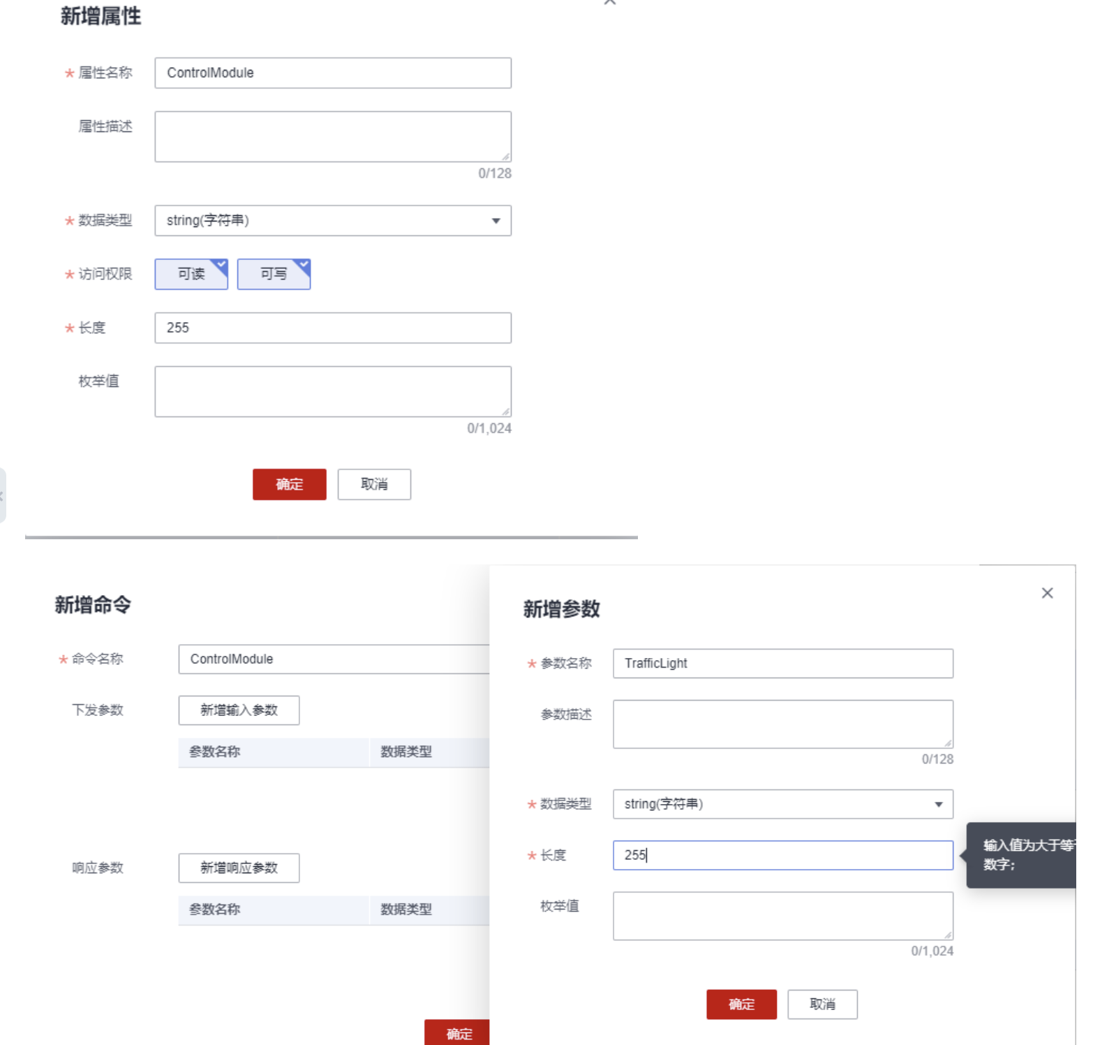 2.6 用户根据自己的要求确定自己的定义。如果您在模型中添加“ TrafficLight” 服务,“拖拉灯”服务类型"旅行灯"是服务说明单击 OK; 将属性“ ControlModule” 添加到属性名称中。"String"是数据类型。访问权限:“可读,可写”,长度:“255”,单击 OK; 将命令“ ControlModule” 添加到命令名称中 。创建名为“ 拖拉亮” 的新参数 。"String"是数据类型。长度:“255”。