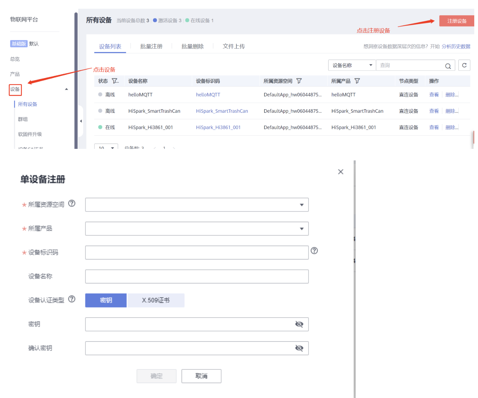 2.7 点击左侧任务栏中的“ 设备”, 然后登记设备地图, 登记开发的产品, 填充您的闲暇时间, 完成后, 您就会看到设备没有注册 。