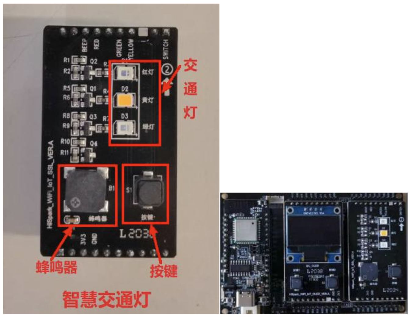 - 硬件要求包括Hi3861V100核心板、扩展板、旧板、交通灯板以及硬件设置和联网图如下。