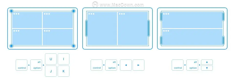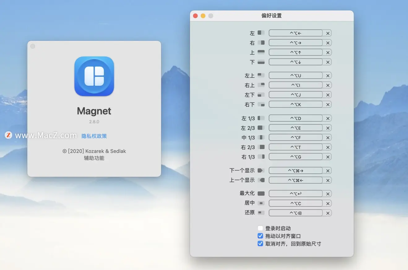 自定义键盘快捷键通过拖动激活,或者磁铁通过将窗口匹配到菜单栏中的有组织砖块来移除屏幕。复制、比较和多任务。