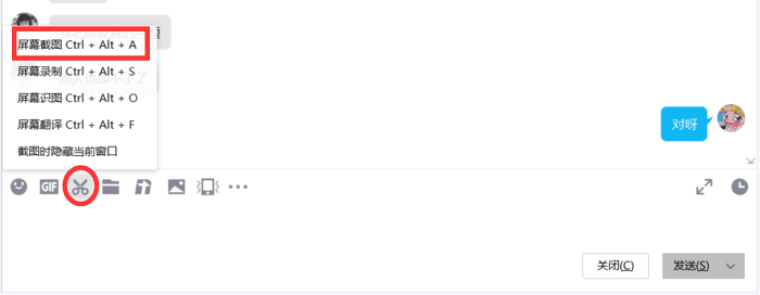 如果您在使用,请打开一个好朋友或聊天盒,单击剪刀截图。