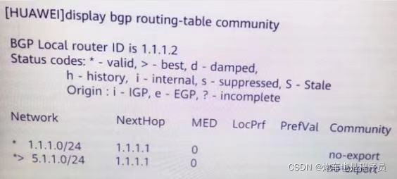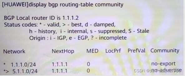 C:目的地第24节组属性值为不出口,表示路由器条目可发送到任何BGP邻居。