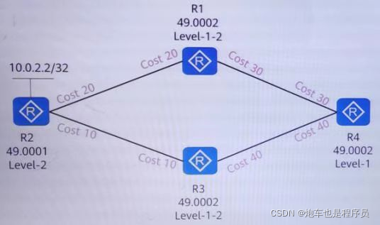 259. 259. 四条路由器运行ISIS,并建立了相邻关系,该区域和路由器的水平如图所示标明;以下是否正确?