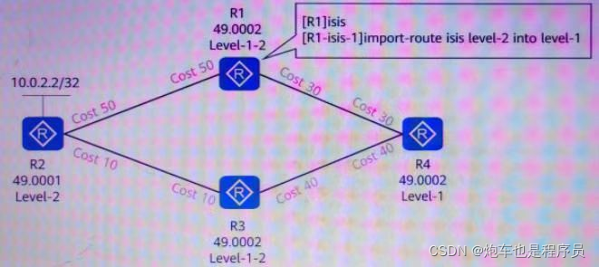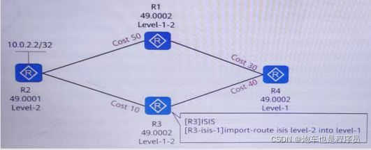 解析:默认情况下, Level-1-2 路由器不知道别的什么。 Level-1 向它通报该区域的路线和主干线。 Level-1 区域的路由器,因此 Level-1 路由器将不知道该地区外的路线信息,因此R1路由器的LSDB中没有R4的LSP。