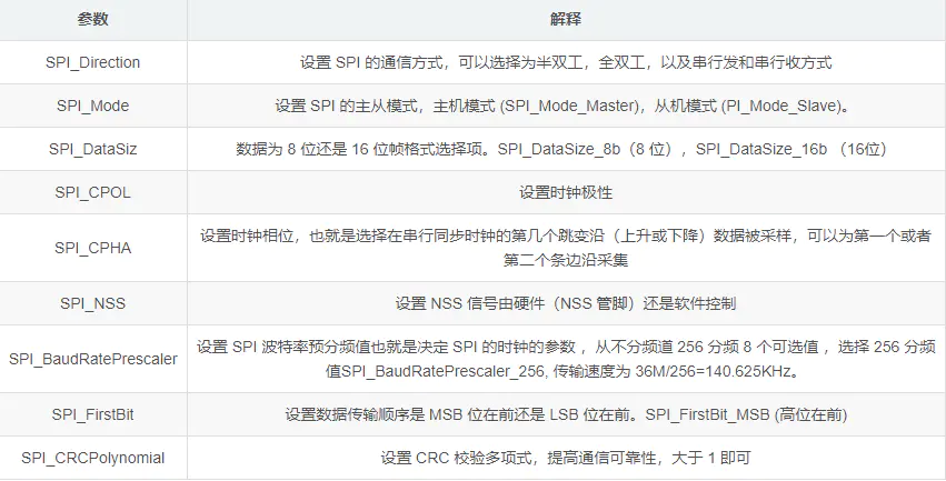 3.配置SPI初始化的参数,设置SPI工作模式:SPI_Init(SPI1,&SPI_Initstructure)