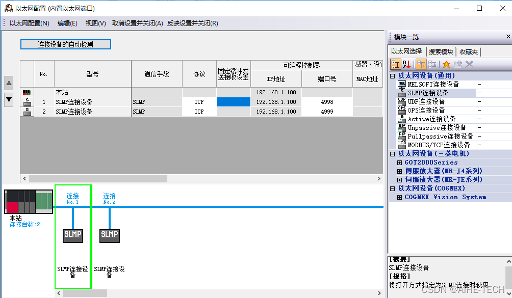 三菱FX5UPLC要求IP地址、通信协议和网络港口以及建立两个港口,以便在两条线上进行互动,具体如下: