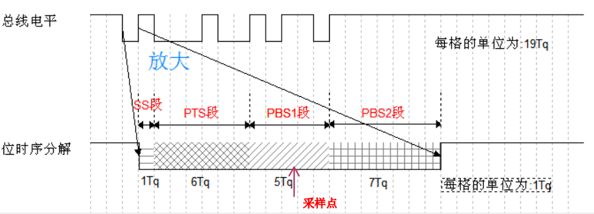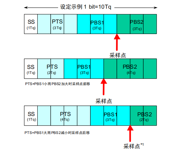 理解位时序,重点在于同步,它分为两部分:硬同步和再同步。在重新同步中,如果SJW被配置为改变PBS部分的长度(PBS1增长),PBS1将能够延长长度。PBS2缩短),要得到总吨位数 在一点点,即长度。(可查阅本文【 二、二、四节 】)
