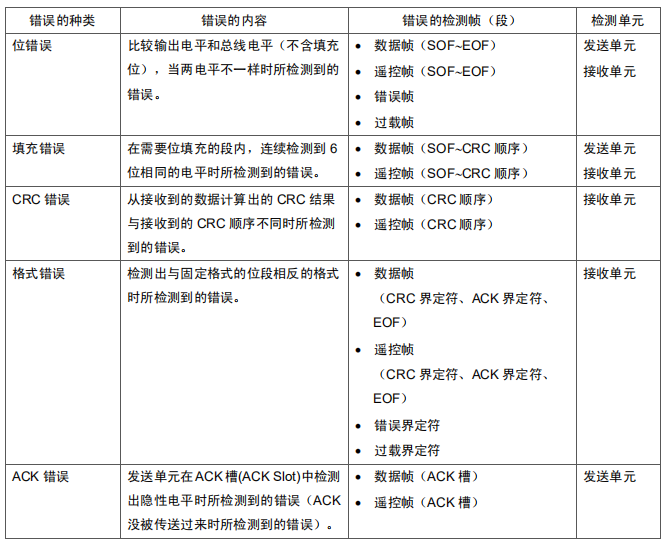 | 错误帧 | 当发现错误时,错误框会通知其他单位。 |