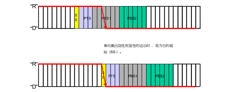 无法核实连续一系列比特时间序列的序列是否同步, 因为它同步了框架启动信号时总线上所有设备的比特时间序列 。重新同步