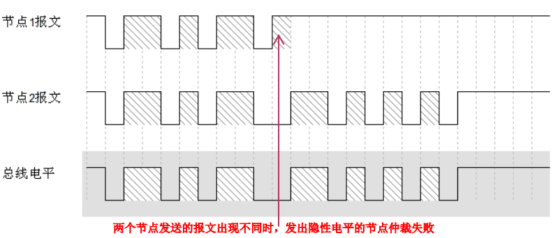 1 在仲裁区域,节点向公共汽车发送了一个隐藏的位置,但读回到节点,这标志着节点仲裁的失败,而节点不被视为错误。