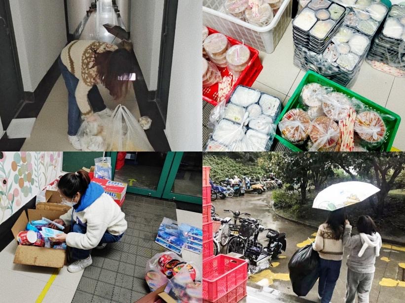 Guogang回顾第一次午餐交货。当时只有大约六七位志愿者。她在人群中送饭后锁上了门。然而,她一转身就发现了这个几个志愿者几乎同时从宿舍出来。“当时楼里很安静,门关闭的声音 几乎回响 同时。它喜欢说,"我们正在路上。"我真的挺感动的,向前迈进对每个人都是一种风险。我们甚至不知道对方的名字 我们甚至不知道对方的名字 我们甚至不知道对方的名字 我们甚至不知道对方的名字我只是想把事情搞到一起 我不知道该怎么办