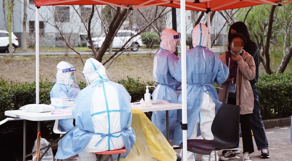 医务人员和志愿者正在核酸检测地点辛勤工作。