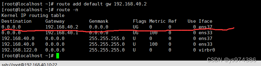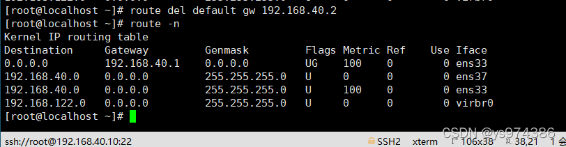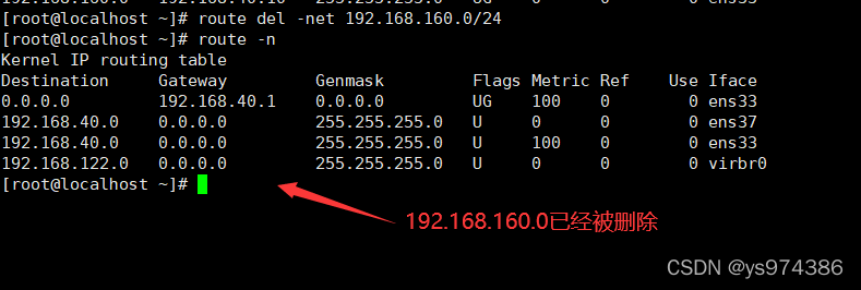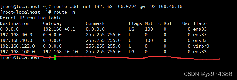 root 添加 - net 网络地址gw IP 地址// 添加到指定的网络段