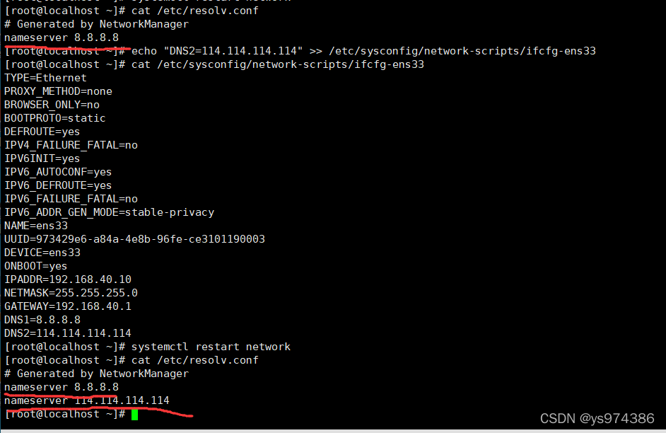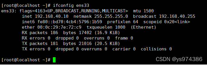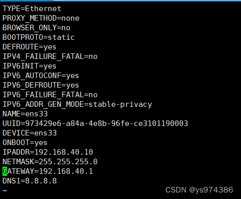 网络接口配置文件默认设置为/etc/sysconfig/network-scripts/ifcfg-ens33。