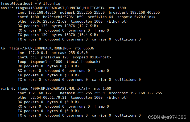 其他:网络接口的物理地址(MAC地址),例如00:0c:29:3e:22:fe: