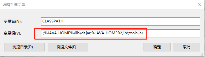 设置 CLASSPATH 并输入变量值 。% JAVA_ HOME% Libdt.jar;% JAVA_ HOME% libtools.jar。