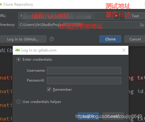 输入您的 git 用户名和密码, 一旦链接建立, 请拨“ 连接存取 ” 。