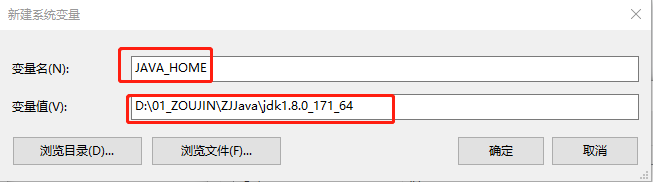 在名为 JAVA_HOME 的系统变量中创建一个新的变量,变量值为 Java 本地安装位置。