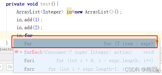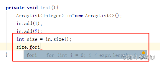 如果使用 int i 循环,快捷键是 int 变量的名称。.fori