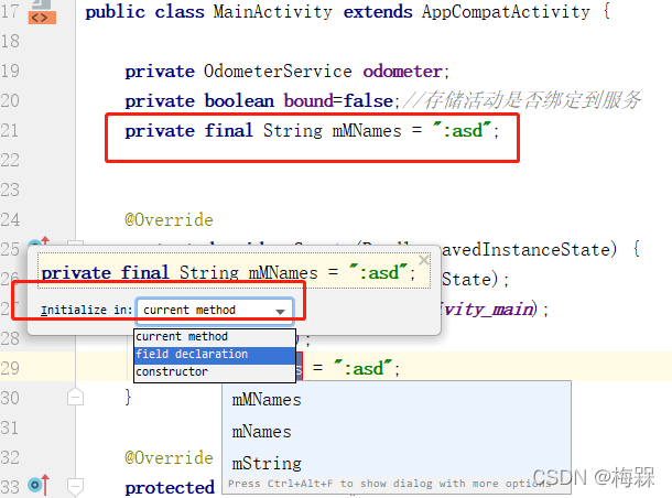 如果您使用 CTRL+ALT+F 快捷键, 选择成员变量的属性将是公共选择的私有 :